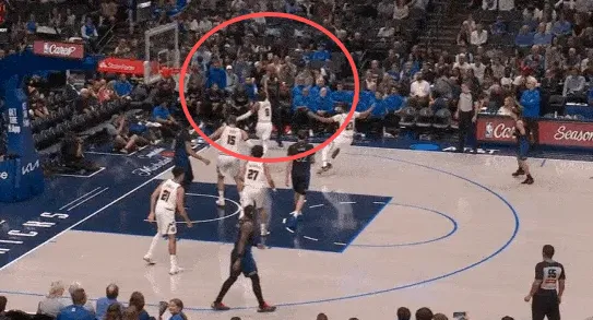 弗拉格和浓眉的挡拆发起,约基奇给平延误,弗拉格先是看向斜前方让弱侧底角的穆雷难以判断(如果回收垫防浓眉,弗拉格可以直接找到底角哈迪),